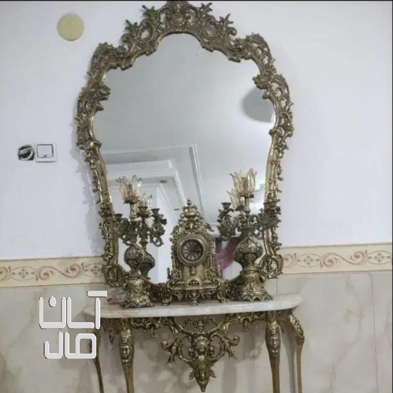 آینه کنسول برنز همراه شمعدان وساعت