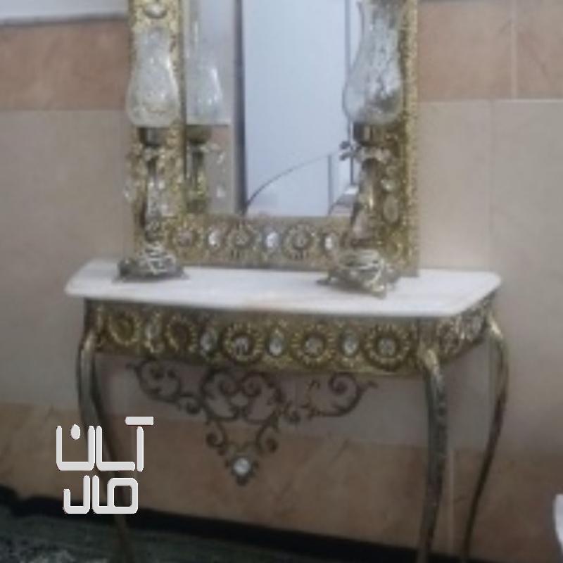 آینه کنسول برنجی بهمراه دو عدد شمعدان