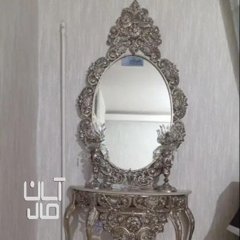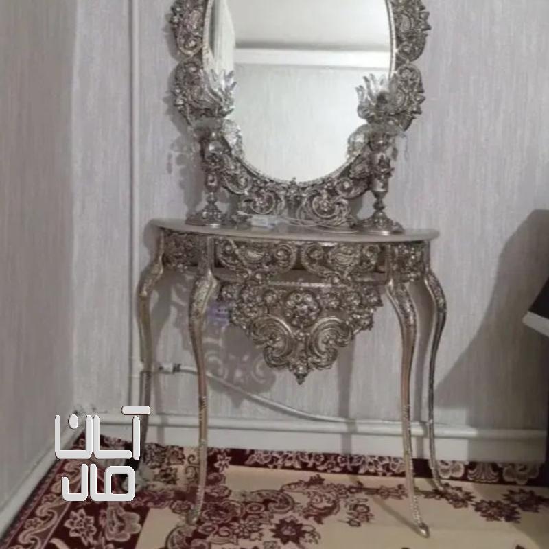 آینه کنسول آلمینیومی همراه دوعدد شمعدان سالم در حد نو