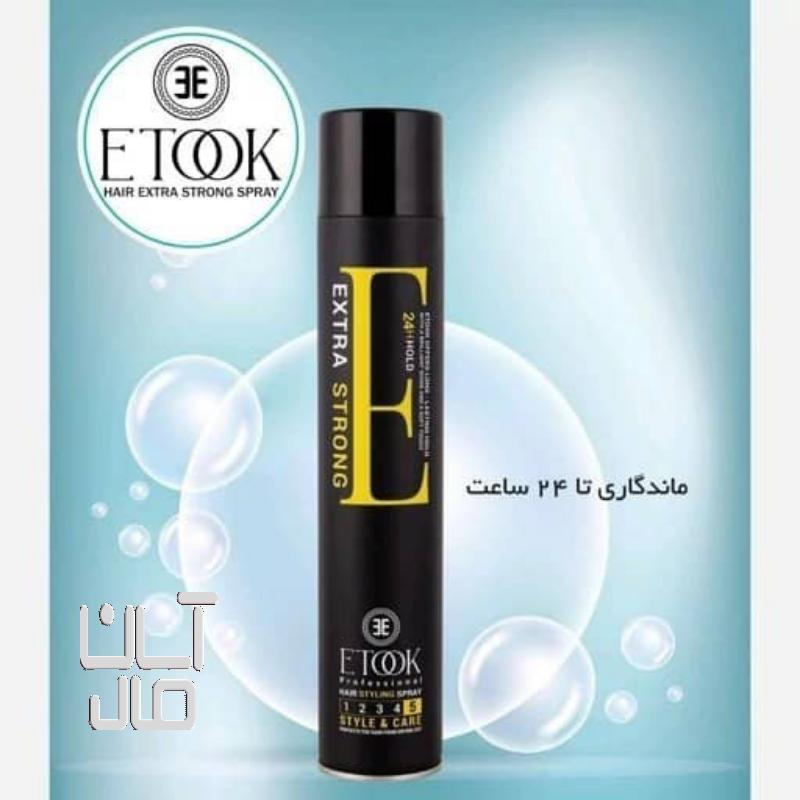 اسپری حالت دهندۀ موی ایتوک مدل Extra Strong حجم 500 میلی لیتر با فرمولاسیون جدید و تاثیرگذاری طولانی مدت، موهای شما را تا 24 ساعت در حالت دلخواه نگه میدارد. این محصول با استفاده از مواد اولیۀ ویژه باعث شفافیت، درخشندگی و نرمی موها میشود. این اسپری موی 500 میلی لیتری از برند ایتوک، دارای مجوز از سازمان غذا و دارو است اما شما باید قبل از استفاده حتما مقداری روی پوست خود بزنید و آزمایش حساسیت را انجام دهید