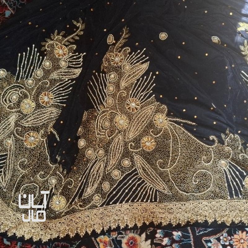 لباس بختیاری مخمل خارجی سورمه ای سنگ دوزی کاردست بسیارزیبا