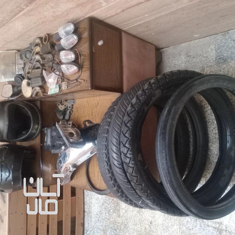 مقداری لوازم موتور سیکلت هوندا ۱۲۵ و آپاچی راهنما آپاچی لاستیک ۳یا۴ عدد گلکیر عقب و وسایل دیگه همراه ۲ عدد کلاه کاسکت